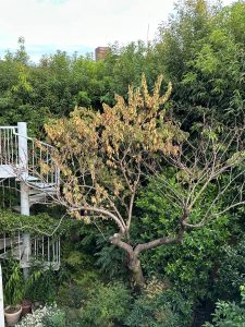 世界や日本では政権の構造が変わったり、一方では相変わらずの紛争や戦争が絶えず貧富の格差拡大にもかかわらず現状を容認するが如くに株価が上昇したり新たな政権の支持率が高い様相を示したりしています。その中でも今まで四季が二季になろうとも木々の葉は紅葉し、季節の短い移ろいの中で花々は咲き枯れ芽吹き、生き物のはてしないそして確かな廻る時間を感じさせてくれた私たちの足元が少しずつ身近なところから崩れてきている様な気がします。当院の拙庭で毎春艶やかな桃色を彩ってくれていた花桃の木が枯れました。ここ数シーズン葉っぱの色艶が無く心配しておりましたが酷暑の最中に半分の葉が落ち、夏の終わりに残った半分の葉も立ち枯れの様子になってしまいました。一昨年の八重桜に続いて春の訪れを感じさせてくれる風景がまたひとつ減ってしまいました。当院の花桃に限らず近隣の公園を散策していても今年は夏頃から葉を落とす桜などが多くこの秋冬を迎えずしてまるで真冬の様相の裸の桜の木が多く見受けられます。人の世の移り変わりや忌々しさが息苦し感じる心を癒し安らぎを与えてくれいた自然までもが多くの現象として崩れ始めているのを間近で感じ何を支えに頑張っていけばいいのか暗澹たる気持ちになります。